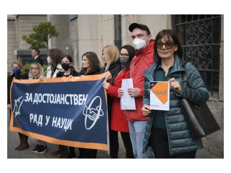 Predstavnici Sindikata nauke Srbije predali su danas svoje zahteve Vladi Srbije u kojima traže bolje plate i uslove rada. Naučnici smatraju da su zapostavljeni, traže sigurnost – garantovano trajno finansiranje svih zaposlenih i zaključivanje ugovora o radu na neodređeno. Ukoliko ih Vlada ne bude čula, najvljuju i veliki protest za 28. februar.