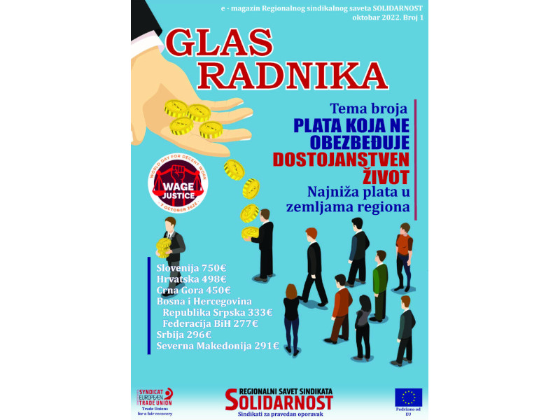 Regionalni sindikalni savet Solidarnost, koga čini 10 sindikalnih centrala iz 6 zemalja bivše Jugoslavije, pokrenuo je, uz podršku Evropske konfederacije sindikata, regionalni sindikalni elektronski časopis „Glas radnika“.